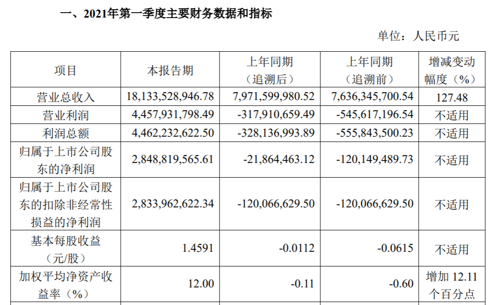 中国中免2021年第一季度业绩快报公告截图