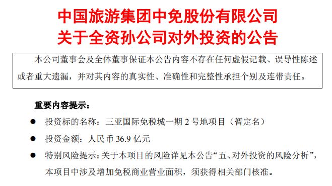 据了解,目前中国中免在海南还在进行海口市国际免税城项目建设和三亚国际免税城一期2号地项目建设,其中海口市国际免税城项目已经完成了免税购物中心地下结构施工,地上钢结构主体框架封顶等工作,预计2022年6月开门迎客,而三亚国际免税城一期2号地项目则总投资达36.9亿元,以期建设成集免税商业(建设周期21个月)与高端酒店(建设周期48个月)为一体的旅游零售综合体项目,预计在2023年开业。