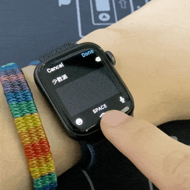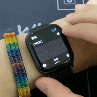 在 watchOS 8 中,你可以直接用数码表冠来移动光标,配合表冠的振动反馈,你可以非常轻松地停在任意位置。此外,原先的表冠选词也得以保留,你只需要选中想要修改的词语,并旋转数码表冠就可以了。