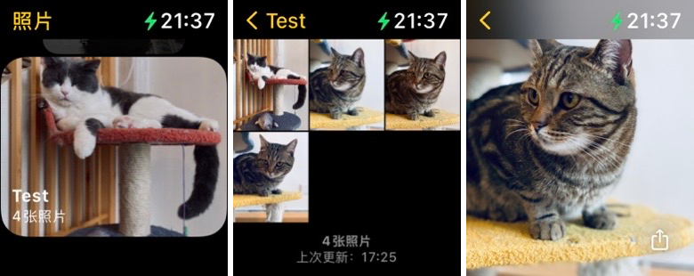 在过去的 watchOS 里,我们只能在 Apple Watch 上查看自己在 iPhone 上选定的相册,并左右滑动查看照片。虽然也能实现「查看照片」的功能,但这样的体验显然不能称得上是一个「相册」。