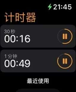 在 watchOS 8 里,「计时器」终于支持同时设置多个倒计时了。同时,Apple 也将「自定」和「最近使用」从底部提升到了顶部。