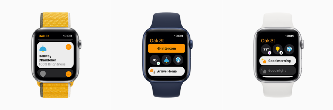 watchOS 本次更新还带来了全新设计的「家庭」应用,你可以更加方便地管理家中的智能设备。同时 watchOS 8 也支持绑定更多的智能设备并与之联动,比如有人按门铃时,Apple Watch 就会弹出相应通知,如果门口有摄像头的话,还可以直接查看摄像头拍摄到的内容。