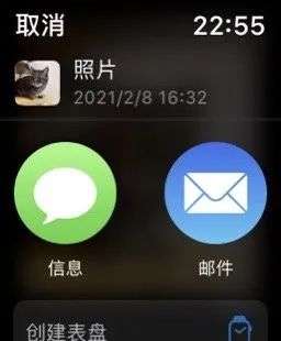 除了展示效果提升外,全新的「照片」应用也带来了交互上的改动。在原先的「照片」里,我们只能将选中的图片设置为表盘,但在 watchOS 8 中,你还可以用分享按钮将照片通过 iMessage 或邮件的方式分享给朋友。