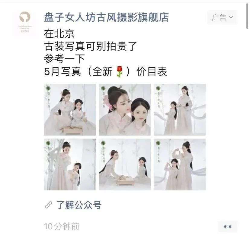 然而矛盾之处就在于,对各大社交平台上的国风美照心动的小白,很难绕过盘子女人坊,“除了盘子女人坊,还真不知道哪里有拍古装写真的地方了”。