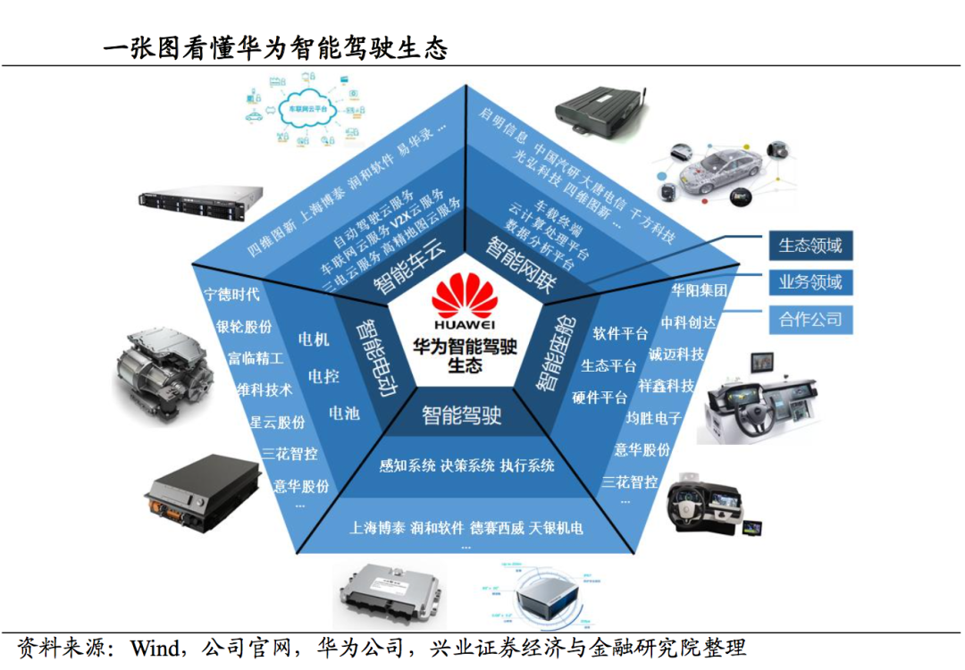 兴业证券指出:与不少高科技企业转型造车的行为相比,华为始终强调无意参与到实体造车行列之中,而是依托手中的 ICT 领域核心技术(信息 和通信技术)为车企服务。通过华为智能驾驶解决方案,让车企合作伙伴不但能 “造好-车”更能“造-好车”,领跑智能网联汽车时代。