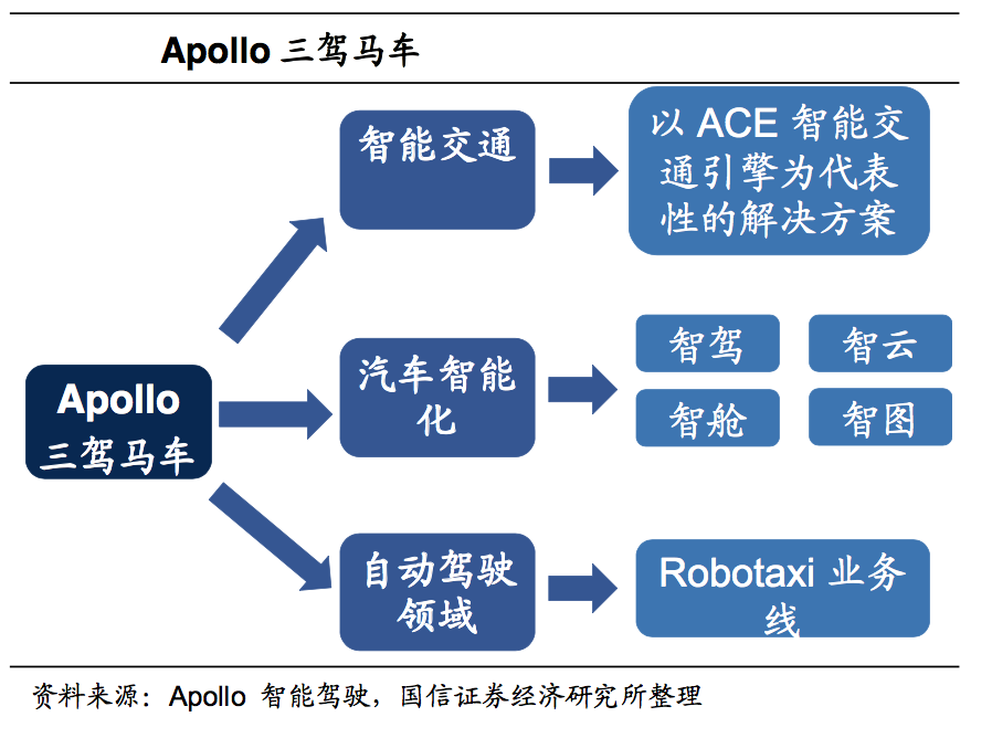而触角广泛的背后是一个开放、完整、安全的平台——Apollo。由于Apollo是帮助合作伙伴快速搭建一套属于自己的自动驾驶系统。百度已从原来集中力量研发百度 Apollo 自动驾驶平台,发展到兼顾自有智能车联和车路系统,从“三驾马车”+造车业务两手抓汽车业务, 涵盖基建-整车-出行全过程,业务布局全面。