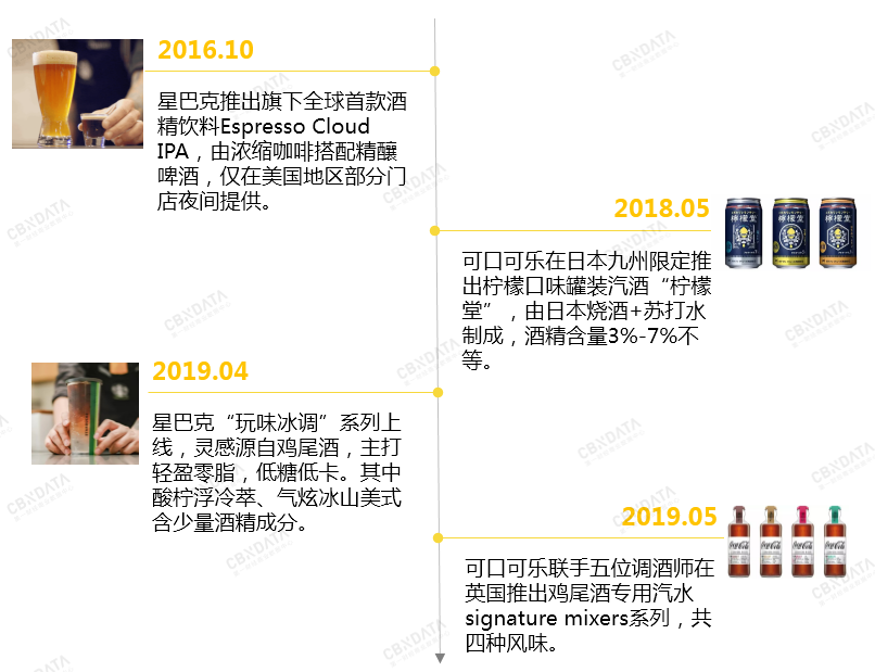 英国食品行业媒体FoodBev Media将“含酒精饮料”列为2020年食品饮料五大趋势之一。含酒精饮料通常是指各种由酒精和果汁、茶饮等配制调和而成的饮品,一般酒精度数较低。事实上,饮品巨头如可口可乐、星巴克,酒企如百威、Molson Coors等,早已在全球市场开始布局含酒精饮料。其实在中国推出酒精饮料之前,可口可乐就曾在2019年英国市场推出过Signature Mixers系列,是首款混合了威士忌等高度酒的可乐。