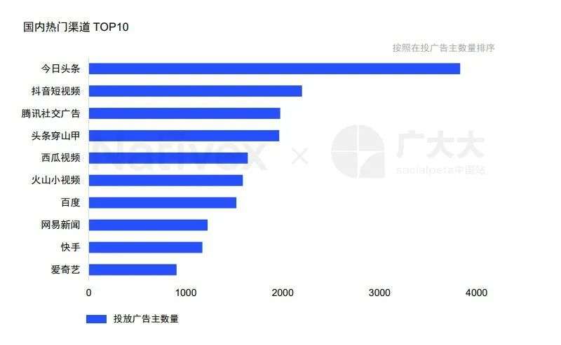 然而实际上,在流量的最直观领域新浪和字节跳动、快手还有着很大的差距。广告营销平台广大大联合Nativex发布的《2020年全球移动市场买量白皮书》显示,国内热门渠道TOP10中,并没有微博的位置。