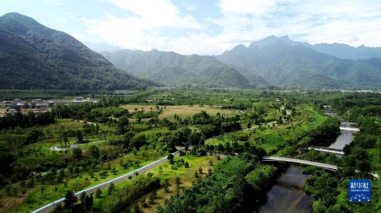 这是2019年7月26日拍摄的陕西省西安市长安区秦岭违建别墅拆除后建设的秦岭和谐森林公园(无人机照片)。新华社记者 刘潇 摄