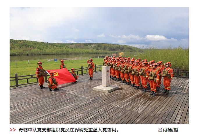 内蒙古自治区森林消防总队大兴安岭支队莫尔道嘎大队七中队,又名“奇乾中队”,组建于1963年,常年驻守在原始林区腹地,主要担负大兴安岭北部原始林区95万公顷原始森林战略防护和200余公里中俄边境火堵截任务。建队以来,中队党支部用实际行动在防火灭火一线践行初心使命,守护着祖国北疆的万里绿色长城。
