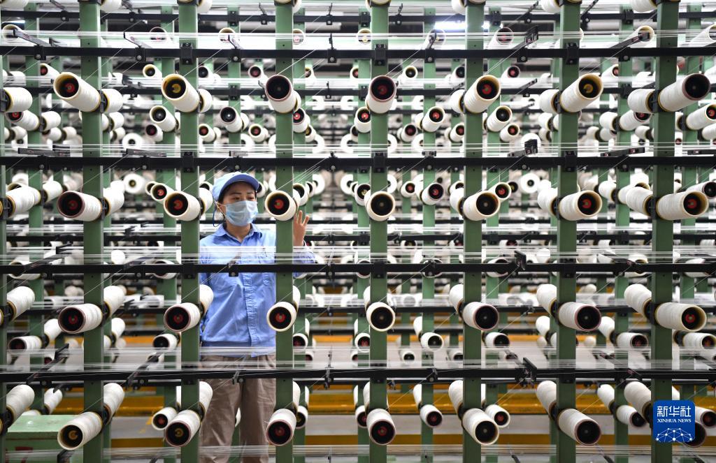 中国平煤神马集团平顶山神马帘子布发展有限公司的员工在查看尼龙丝道(2019年3月20日摄)新华社记者 李嘉南 摄