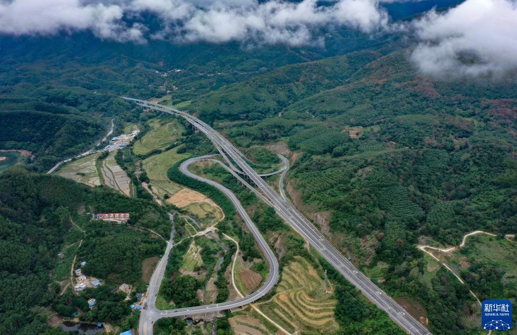 海南海三高速公路一景(2020年12月12日摄,无人机照片)。新华社记者 郭程 摄