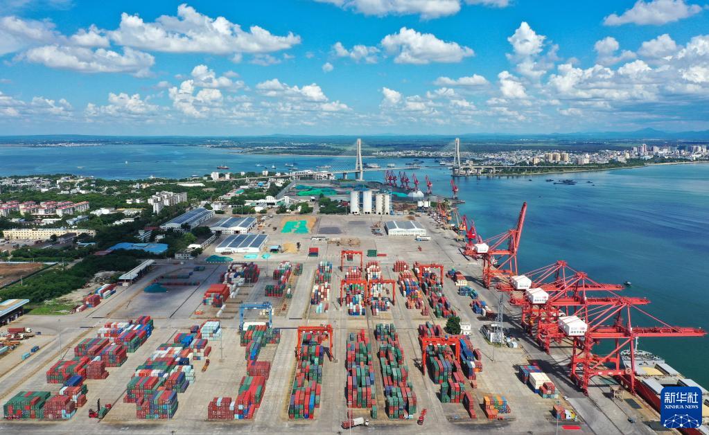 位于海南洋浦经济开发区的洋浦港(7月22日摄,无人机照片)。新华社记者 郭程 摄