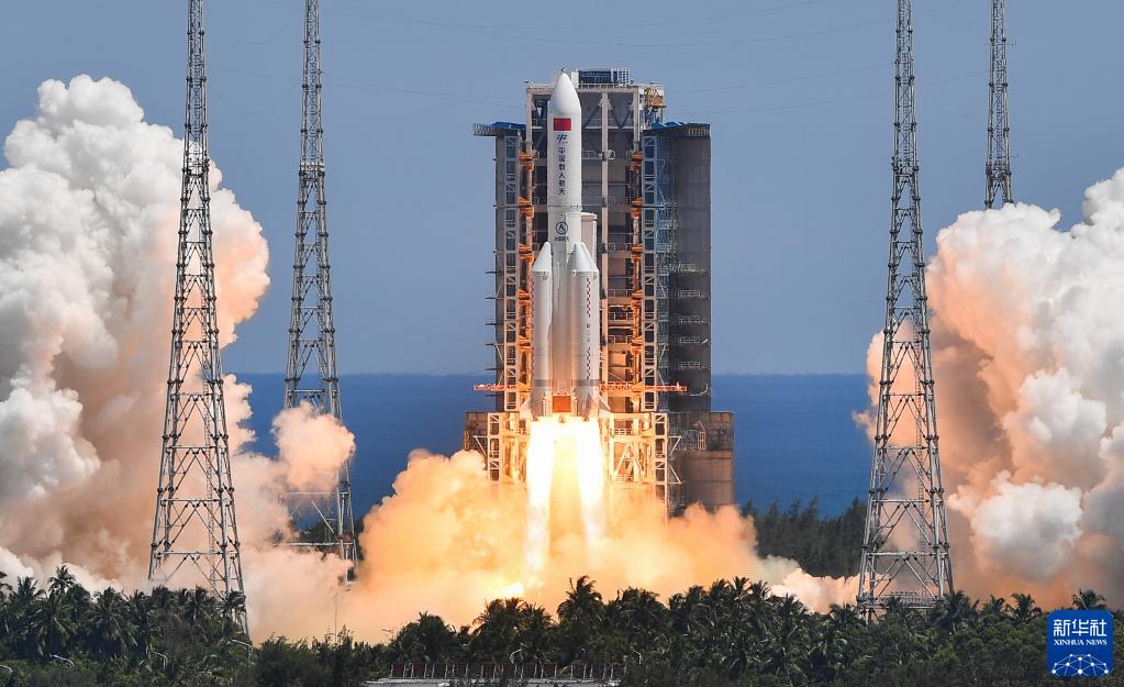 7月24日,搭载问天实验舱的长征五号B遥三运载火箭在文昌航天发射场成功发射。新华社记者 杨冠宇 摄