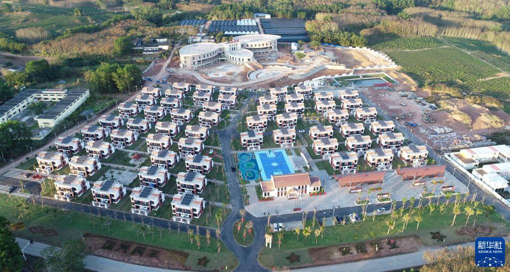 从热带雨林深处搬迁出来的生态移民村——海南省白沙黎族自治县牙叉镇新高峰村(2021年2月5日摄,无人机照片)。新华社记者 杨冠宇 摄