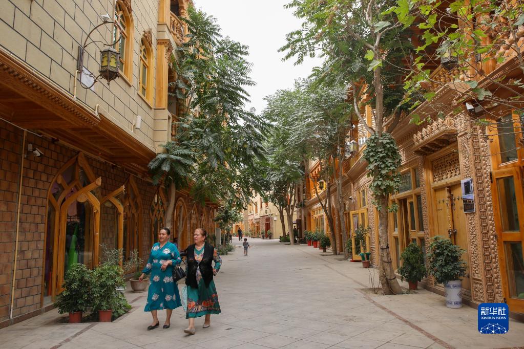 这是在新疆和田市拍摄的由北京市援疆资金支持改造的团城(2019年8月1日摄)。为改善居住环境,保持和田历史文化街区风貌,当地利用北京市援疆资金,对和田老城区进行保护、安居、旅游与就业四位一体的改造。新华社发(许珠珠 摄)