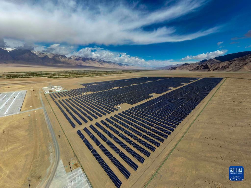 这是深圳援建的新疆塔什库尔干塔吉克自治县2万千瓦太阳能光伏扶贫电站(无人机照片,2020年6月15日摄)。新华社记者 胡虎虎 摄