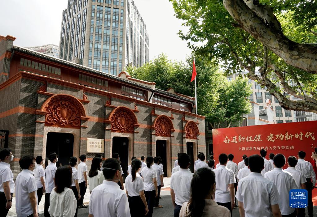 上海市新党员代表入党宣誓活动在中共一大会址前举行(2022年7月1日摄)。新华社记者 刘颖 摄