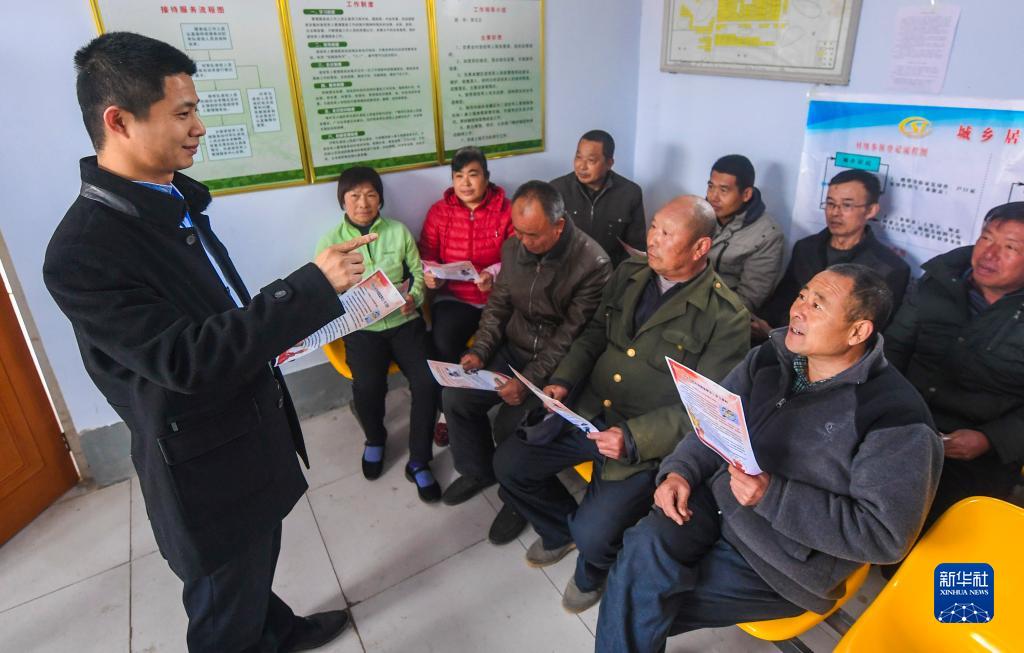 河北景县纪检监察干部为杜桥镇西徐庄村村民讲解监察法知识(2018年4月4日摄)。新华社记者 李晓果 摄