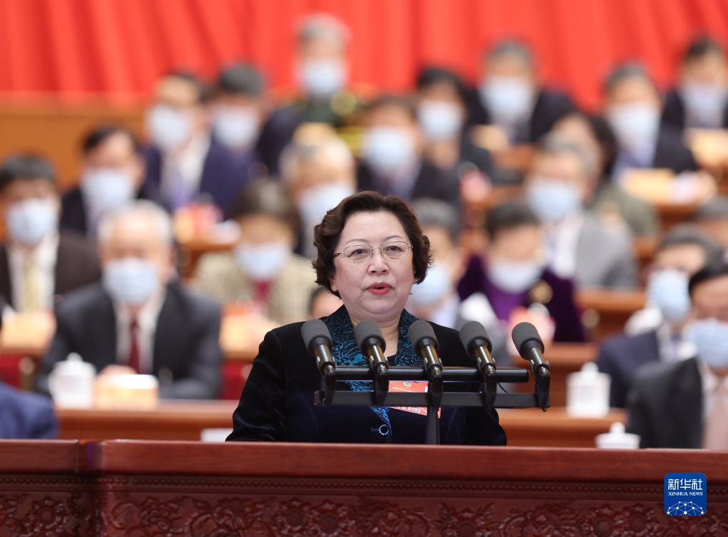 3月7日,全国政协十三届五次会议在北京人民大会堂举行第二次全体会议。这是王红委员代表民革中央作大会发言。新华社记者 丁林 摄