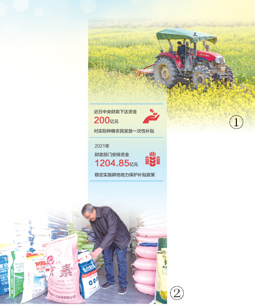 图①:江西省新余市仙女湖区欧里镇白梅村农民驾驶农机翻耕土地。 赵春亮摄(影像中国) 图②:日前,浙江省丽水市景宁畲族自治县农民在惠农农业生产资料连锁配送有限公司选购化肥。 影像中国 数据来源:财政部