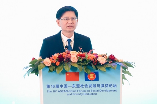 刘焕鑫表示,中国和东盟地缘相近、人文相通、命运与共,友好关系源远流长,我们将深入贯彻落实习近平主席在中国—东盟建立对话关系30周年纪念峰会、全球发展高层对话会上的重要讲话精神,充分发挥广西面向东盟国际大通道的作用,与东盟国家、东盟秘书处、联合国相关机构等共同构建全球减贫与发展伙伴联盟,持续办好中国—东盟社会发展与减贫论坛;对在柬埔寨、老挝、缅甸3国6个贫困村实施的村级减贫项目进行深入总结,在此基础上会同有关国家设计实施好“东亚减贫合作倡议二期”项目,共同探索积累更多务实合作经验;组织建立“中国—东盟减贫专家库”,汇聚各国、各领域推动减贫与乡村发展的新理念新思路新实践,为构建更为紧密的中国—东盟命运共同体作出积极努力。
