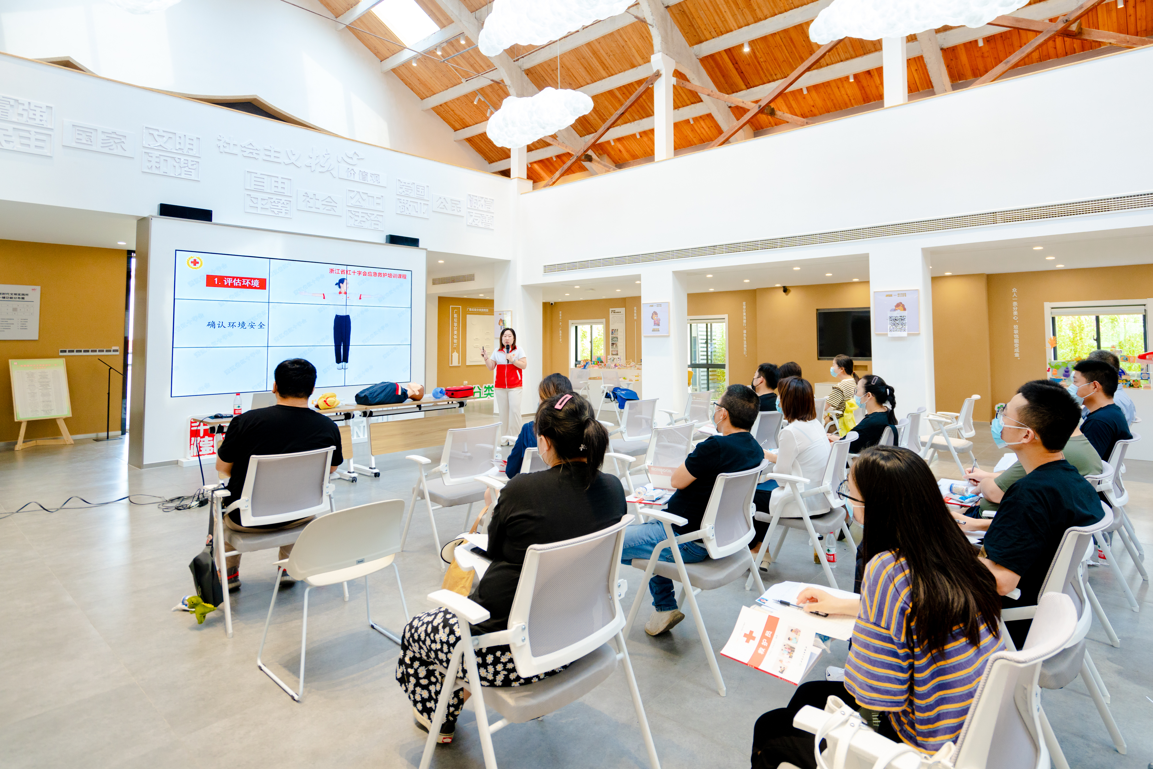 2022年7月17日,平湖市新仓镇应急志愿服务队开展红十字救护员证培训