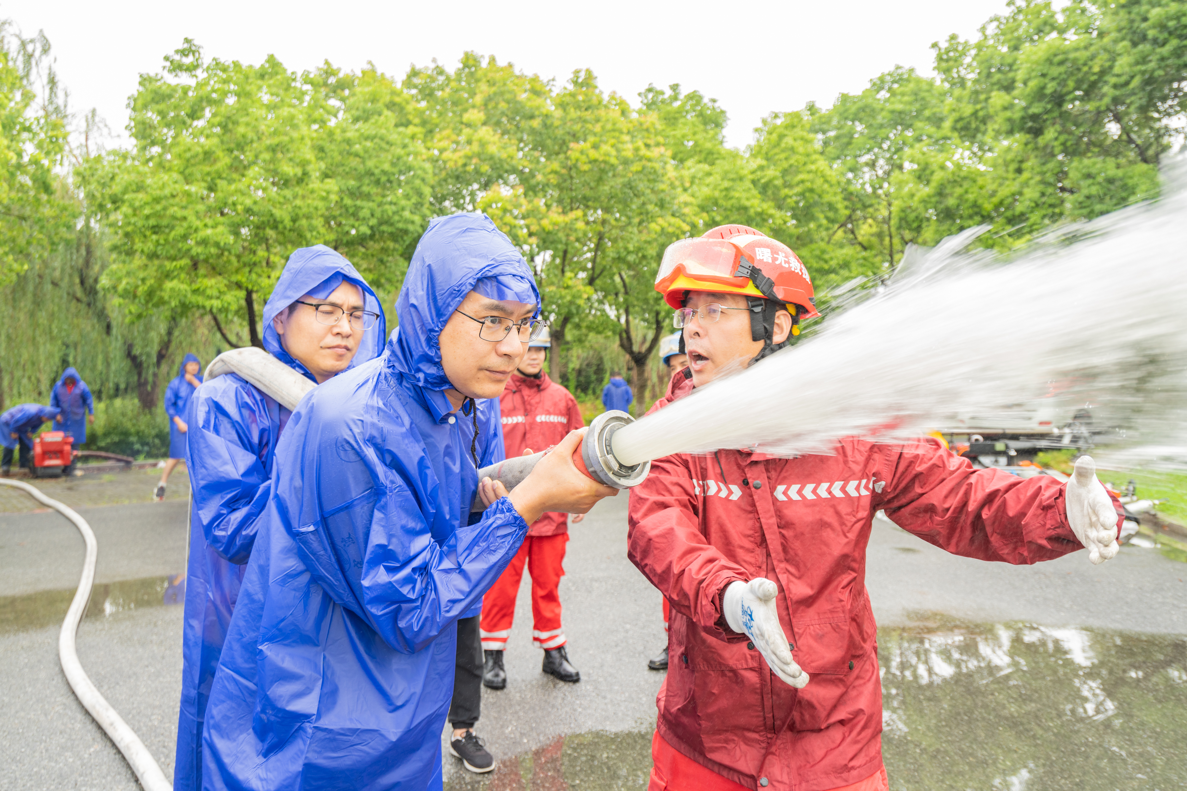2022年8月14日,平湖市曹桥街道应急志愿服务队伍开展消防演练